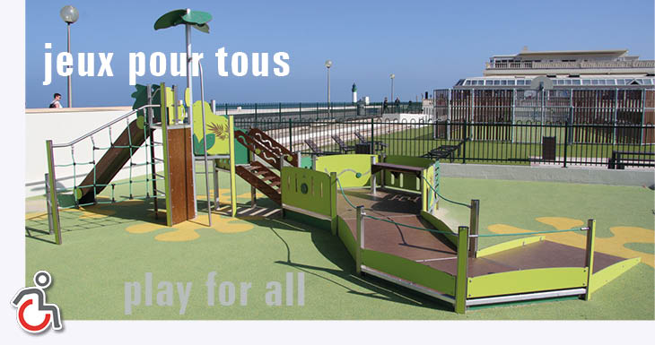 Les aires de jeux PMR QUALI-Cité® permettent à tous les enfants, avec ou sans handicap, de « JOUER ENSEMBLE ». La loi sur le handicap du 11 février 2005 nous sert à évoluer dans le but de limiter les discriminations entre individus et notamment entre les enfants. L’aire de jeux doit être stimulante et inspirante pour les enfants.